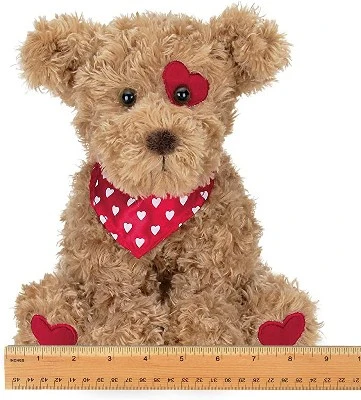 - A SWEET PUPPY: An adorably cute 11″ tall stuffed animal puppy dog that is perfect for Valentine’s Day. This adorable pup features soft scruffy brown fur and red heart patches that are sure to delight anyone who sees it. This Valentine’s plush is surface washable, making it easy to keep clean and fluffy. The perfect size for cuddling and carrying around, this small stuffed plushie dog is the perfect stuffy for any child or even for adults who love cute and cuddly things.