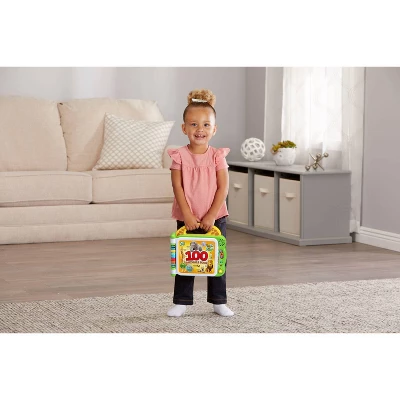 Hold 100 animals in your hands with the touch-sensitive pages of the 100 Animals Bookâ„¢! Six double-sided, interactive pages feature animals from 12 habitats and environments. Kids have a natural curiosity about animals, and this book provides lots of opportunities for exploration with illustrations and photographs of animals from the desert, savanna, rain forest and more. Three modes teach about animal names, animal sounds and fun facts on each page. Switch the language setting to hear about the animals and listen to songs in either English or Spanish. Fun facts about animals promote early science awareness, making this book a must-have addition to every little learner’s library. Intended for ages 18+ months. Requires 2 AA batteries. Batteries included for demo purposes only. New batteries recommended for regular use.