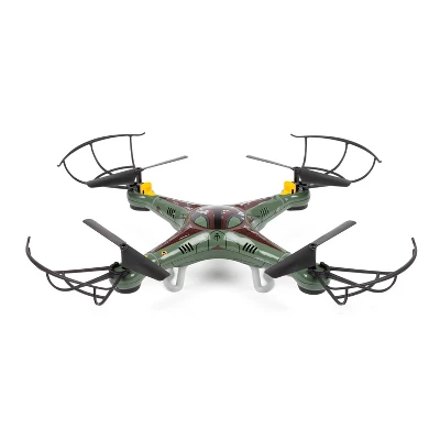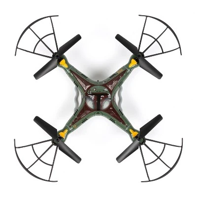 Conquer the forces of evil with the brand new Star Wars The Mandalorian Boba Fett 2.4GHz 4.5CH RC Quadcopter! Powered by four rotors and made from a durable and lightweight plastic polymer body, the Sky Hero is tons of fun and easy to fly even for beginners. Enjoy complete flight control with a smooth six-axis gyro and a 2.4GHz, 4.5-channel transmitter, equipped with an LCD interface so you can view valuable flight information. Try out the flip stunt mode with the push of a button and wow your friends and family by performing amazing stunts like loops, rolls, flips and even upside down flight!